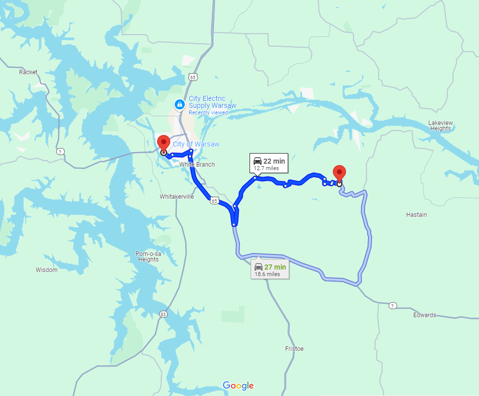 Closest Town/City: Edwards, Missouri 65326 - 15 mins (9.5 miles)