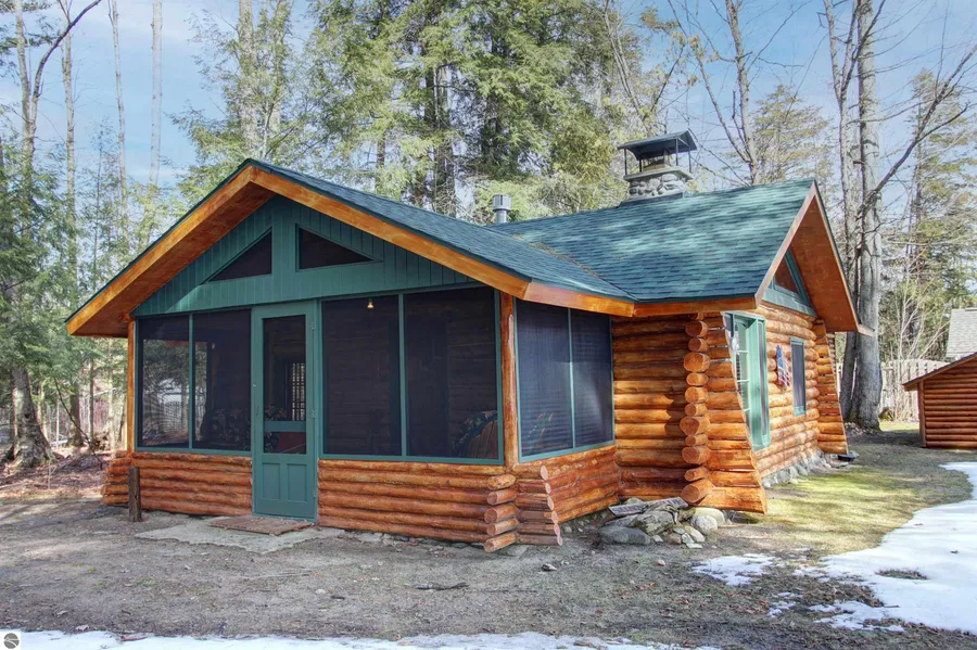 Rare opportunity to own a vintage piece of Up-North lakeside living! "The Sunnyside Cabin" is part of The Pines Cottages, a group of 11 log cabins that were built in the 1930's and relocated to this 2.84-acre parcel on Elk Lake in the 1940's. Sharing 223' of sandy frontage on Elk Lake, it has become an exclusive summer community, with the monthly association fee of $175 covering everything from your property taxes, upkeep of the land, snow plowing and road maintenance, to the shared water, septic, and trash removal for the development. Each cabin is unique, and The Sunnyside Cabin is one of the best - it is being sold furnished and is styled with a mix of local art, antiques and artifacts, all embodying a northwoods/lakeside aesthetic. Updated in 2022, it features a new bathroom with a custom stone shower, custom countertops, and a heated floor; the two-section living area features a flo...