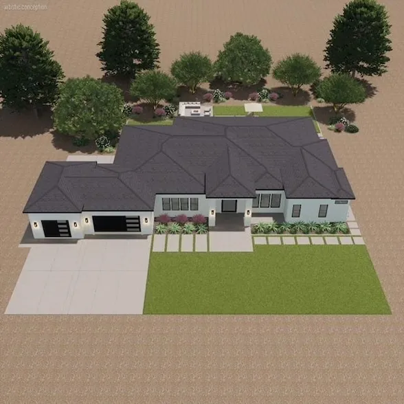 Welcome to Red Hawk ridge, a new contemporary luxury home set on 2.86 acres. A grand great room will draw your gaze to the panoramic mountain and valley views beyond a generous bank of energy efficient windows, shaded by a south facing outdoor living space that is the perfect place to entertain and impress family and friends alike. This newly constructed masterpiece by Majestic Builders showcases the finest in modern and contemporary finishes. Four bedrooms and four baths, 3 bedrooms ensuite. The large fourth bedroom opens to the courtyard, and could double as a game room or flex space. A separate office affords remote work to fully enjoy your own slice of paradise. Energy efficiency meets luxury open living. Deep three car garage with a pass through door to rear. Crystal Bld. is not a through street affording the luxury and privacy in a quiet rural setting. Appliances are still being chosen, the refrigerator will be a built in Thermador, custom cabinetry, soft close drawers, custom efficient lighting, Moen bath fixtures. Primary bedroom enjoys a dressing room and luxury ensuite bath. With an estimated completion date in early 2025, make this yours now before it gets away. Some photos are renderings and a likeness of the finished home. Pool if selected would be buyer paid option