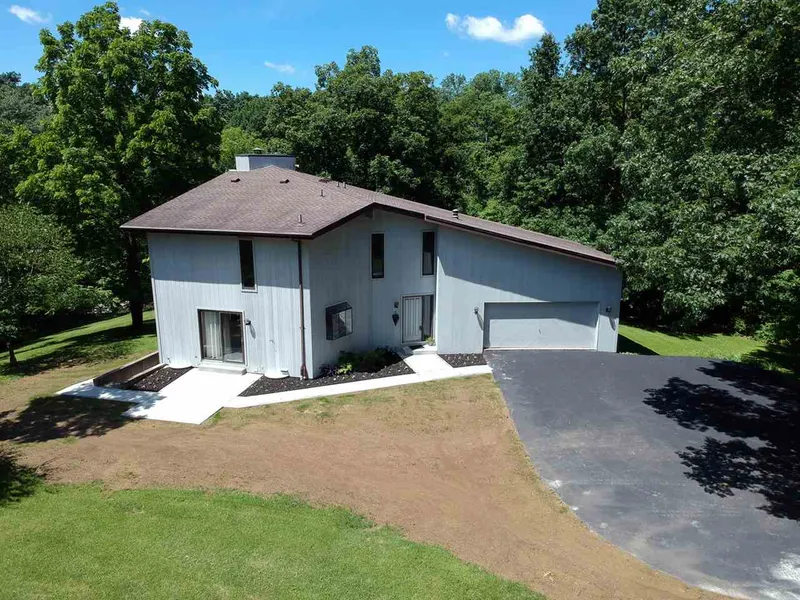 Custom Sutter Design Cedar Contemporary. This one of kind one owner home situated on a tree lined knoll has been admired for years in Kenton county. Once featured on Cincy's TV12 PM Magazine. Features 2 stone fireplaces and massive stone chimney, spiral staircase, sunken living room and a full basement. Hear the creek from the massive wrap around deck or enjoy the privacy from the patio just off the kitchen. 2 car attached garage plus a pole barn. Situated on a very private 2.8775 acres.