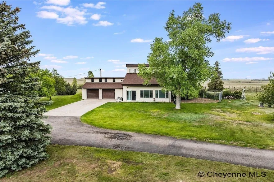 Rare and unique rural property just west of Cheyenne! Situated on 2.87 perfectly developed acres, 7814 Healy Road is truly a Wyoming gem! The 1.5 story residence offers coated concrete flooring on the main level, an excellent choice for an elegant look and easy maintenance. Soaring ceilings in the great-room add an open feel to the space, making it the ultimate spot for entertaining friends and family. A refreshed kitchen with full slate appliance suite and massive island provides plenty of workspace to create your culinary delights! Two large bedrooms, and updated bath and mud-room round out the main level. The loft is designed to be the owners private retreat! Large enough to fit the grandest of bedroom furniture with abundant sunshine through the south facing windows. The walk-in closet is 27 feet long and can accommodate a premium wardrobe. Completing the primary suite is an en-suite bath with an oversized shower! While you can store your daily driver in the 754 square foot attached garage, the real storage can be found in the two additional 2-car detached garages on the property! They both include concrete flooring and are perfect for workshops, car hobbyist or anything that you need extra space for. RV electric hookups are convenient to the driveway for your camping visitors. A solar system is installed to accomplish a "125%" of use capacity, making your electric bill much easier to pay! the property has multiple mature trees, tree lines and is lush with grass lawn. The hot-tub is included in as-is condition and the dog run is negotiable on a case-by-case basis. Make a move quick to get this fabulous Cheyenne property!