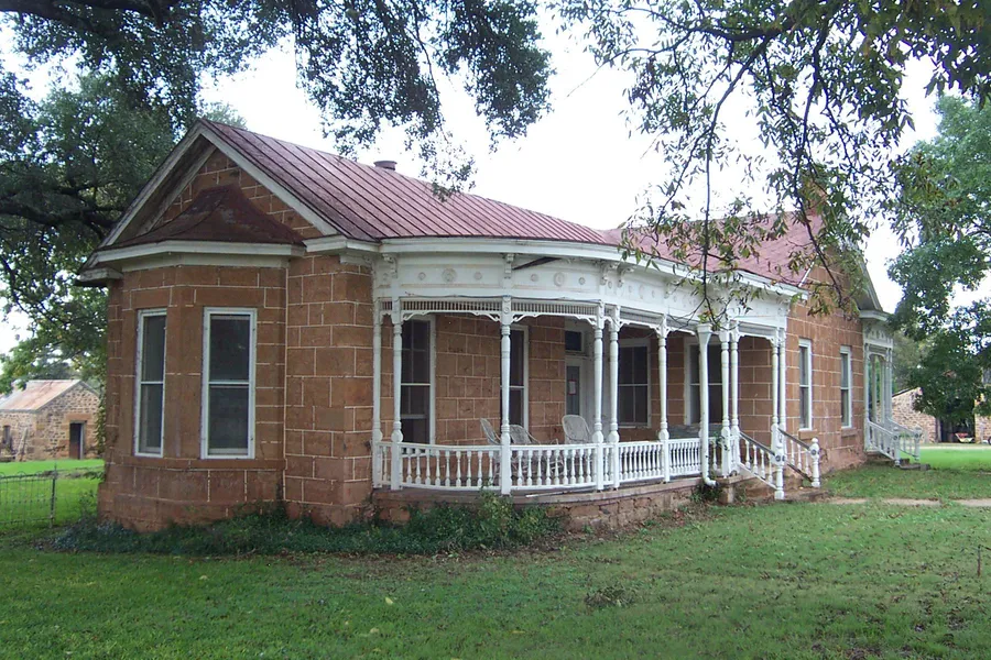 Known locally as "The White House/Mildred Grant House" after a prominent local ranching family who purchased the home in the 1890s. Mid-Victorian style stone home with random hexagonal structure of older rooms, tall windows, high ceilings and wood floors. Two L-shaped front porches. Interior has been stripped won to expose the bare walls, ceilings and floors in preparation for restoration. This is a restoration project for one with vision for future use as a residence or conversion to other uses such as offices, or bed and breakfast venture. Two story stone outbuilding, elevated cistern and stone wash house are additional features. Property has historic curb appeal. Located on 2.876 acres that stretches from Austin Street (HWY 29) north to Comanche Creek.