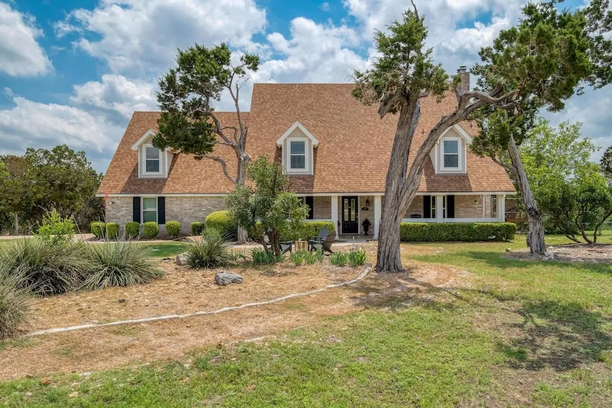 Absolutely gorgeous remodeled home nestled on a private culdesac perched on 2.88 ac w an oasis pool& panoramic views of the Tx Hillcountry for miles! Extremely well maintained & over 230K in upgrades added in the last 3 yrs! Everything about it exhudes character& charm from the min you walk up to the full length tiled front porch to the cozy firepit sitting area. Inside you are greeted by beautiful Travertine& wood metro flooring throughout (NO CARPET!), crown molding, chair railing, 2 wood burning fireplaces w drystack tile& fluted mantel, 5 in baseboards, built in bookshelves, tasteful deco lighting& new double paned big picture windows that bring in tons of natural light making this a bright& happy home! Full bed& bath down perfect for guests& the kitchen boasts built in SS appliances w warming drawer, deep farm sink w gooseneck faucet, tile backsplash w mosaic inlay& fabulous bay wi...