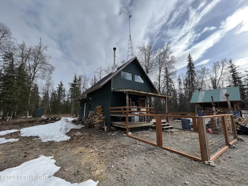 Your Alaskan cabin awaits! Recreational opportunities with Kidney Lake across the street. (canoe, paddleboat included). Comes semi furnished, plus wood stove, fridge and new washer/dryer. Large lot has a chicken coop, gazebo and huge trees everywhere. No CCRs, so horses and/or guest cabins are OK. Fixer upper, inspection done, owner financing available on approval. Did we mention 2.89 acres!