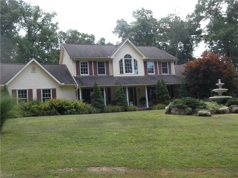 View the outdoors & wildlife from inside this fabulous 4 bedroom, 3 1/2 bath home on almost 3 acres close to Salt Fork & Seneca Lakes. Enter the home from the inviting, covered front porch into a foyer w/vaulted ceilings & decorative archways w/home office to left w/many built-in cabinets/desk space ready to greet clients for your home business. (Floor plan allows office to be opened up as a formal dining room, if preferred.) Formal living room leads to a brightly lit family room w/gas fireplace & massive arched windows w/open concept to the dining area & large kitchen w/plenty of oak cabinets/pantry, a breakfast bar & desk. A sunroom leads to the large rear deck both overlooking the back yard & woods. The 1st floor master bedroom offers a large master bath w/soaker tub, his/her split sinks & his/her closets. The laundry/mudroom & 1/2 bath conclude the first floor w/easy access from back deck or 2 1/2 car garage w/added storage above. The second floor has a spectacular hallway offering views of the wooded outdoors through the massive windows plus overlooks the foyer & family room. 3 nice-sized bedrooms & full bath w/double sinks complete the 2nd floor. The partially finished, walkout basement has a media room, full bath, unfinished game room & storage area. Paved drive, landscaping, surround sound system, GFA w/new AC unit are an added bonus. Hiking trails, natural spring to allow for a future pond (if desired) plus add'l land may be negotiable. Don't miss out! Call today!