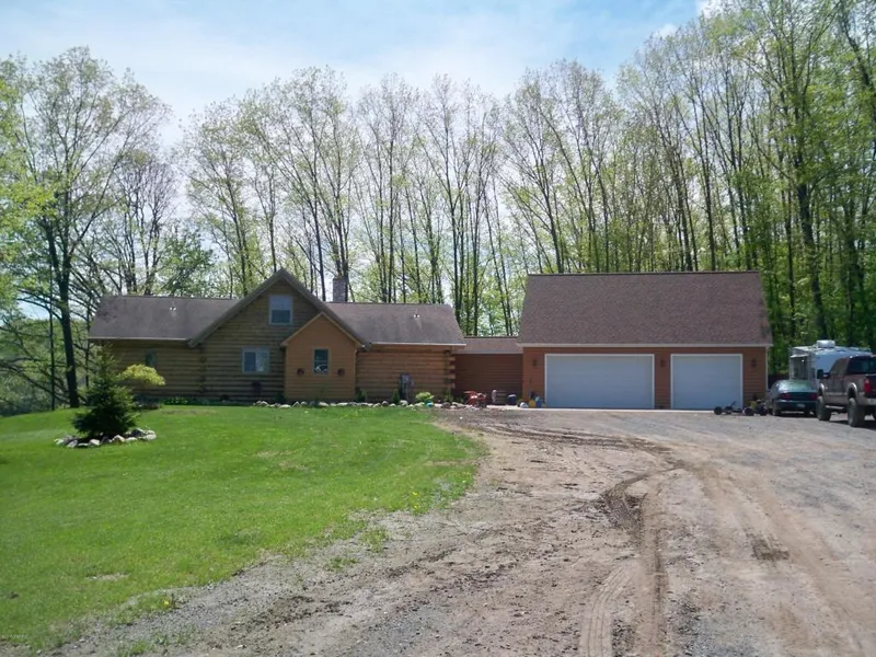 TRADITIONAL LOG HOME ON ORDWAY LAKE. This is your chance to live on a private lake in a home that has all the things for you and your toys! Total finished areas is 2,495 sf. Construction includes natural pine railings, open ceilings and massive windows facing the lake. Added to the property since 2012 is a high quality wood heating system, 28 x 32 garage with bonus room and breezeway, 30 x 60 pole building with cement floors and 16' ceilings, hot tub room, and mud room entrance. 121' of wate r frontage on Ordway Lake. Come see your next Up North home! Call Bob Budreau at 231-843-5119 for showings.