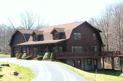 SPACIOUS LOG HOME 2.9 ACRES~~POND~~STREAM Picturesque 4 bedroom, 3 1/2 bath log home nestled on landscaped 2.9 acre parcel conveniently located minutess to Delaware River offering spacious living area, large cedar deck, screened in porch, central vac, 24x26 bonus room, partially finished basement w/ sliders overlooking spring fed pond, 2 car garage, wide plank hardwood floors, sprinkler & intercom system & fireplace.