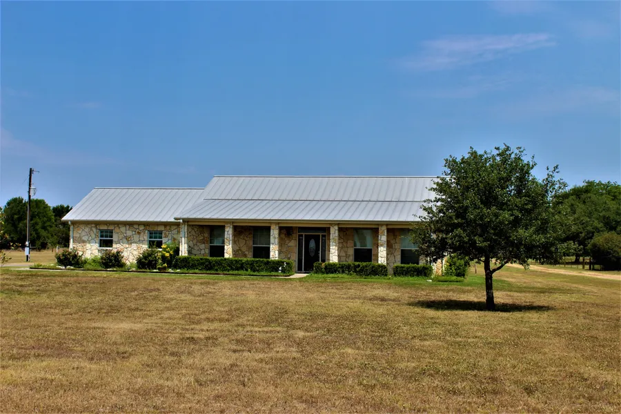 Quality built custom home on small acreage, close to historic La Grange, TX. One owner, like new! Stone with Hardi construction & metal roof. 2193 sq ft, 3 Bedrooms, 2 baths, stone construction, one story. The living room features a wood burning fireplace with electric logs if youd prefer not to burn wood, and a custom wood mantle. The kitchen has quality wood cabinets, granite countertops, an island, desk area, stainless appliances, reverse osmosis system under sink and on the icemaker. The bedrooms are split with a private master suite. The master bedroom has a walk in closet and access to the back covered porch. The master bath includes a handicapped accessible shower and double vanity. One of the secondary bedrooms was used as an office and has some wood shelving and a desk. Many upgraded features in this home; crown molding, high ceilings, custom blinds, surround sound, real wood floors, recessed lighting, pocket doors, 36 handicapped accessible doors, wide hallways, ceiling fans on front & back porches, etc...