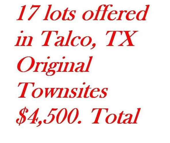 COURT ORDERED SALE OF 17 LOTS IN ORIGINAL TALCO TOWNSITE. NO SURVEY TO BE FURNISHED TO BUYER. BUYER WOULD PAY ONEHALF OF TITLE POLICY, IF REQUIRED. LOTS BEING SOLD WITHOUT WARRANTY AS TO LOCATION OR CONDITION. FRANKLIN COUNTYHISTORICAL ASSOCIATION OWNS APPROX 76% WITH APPROX 24% IN NUMEROUS MINOR INTEREST. CLEAR TITLE AT CLOSING ANDFUNDING.