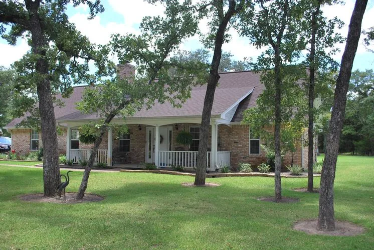 Hidden from view by the lovely trees is this immaculate, brick, two bedroom two and one-half bath home on 2.93 gorgeous acres in a very desirable area of Colorado County. This home has beautiful tile floors throughout. The den features: high ceilings, lovely fireplace with heatilator and log storage, and an ample number of windows to enjoy the wonderful views. The kitchen is well equipped with a gas cooktop, built in oven & microwave, double sinks, desk area, pass through to the dining room, and great windows. This is a split floor plan with bedrooms being located on either side of the living area. Both bedrooms are spacious with large closets. The master bath has a garden tub/shower combo and the spare bath has a shower. The half bath is located right as you enter from the attached, oversized, two car garage. No need to worry with moving water hoses around to keep the grass green; there is a sprinkler system. Home is wired for a security system. Porches are located on both the front and back of the home for your enjoyment. This property will not be on the market long!