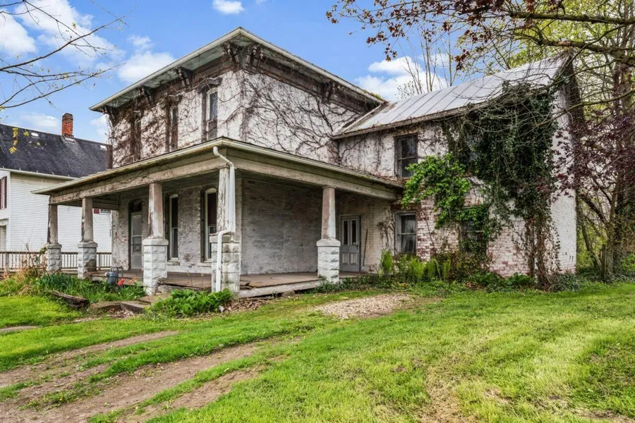 Older home looking for new owner. This two-story home dates back to 1881 and sits along Route 13 in the heart of Utica. Almost 3 acres including 2.75 acres of recreational, wooded land bordering the river. Wait till you see the winding staircase, pocket doors, high ceilings, chandeliers, decorative fireplaces, hardwood floors, built-in cabinets, big windows, & retro vintage wallpaper. Main floor includes foyer, living room, parlor, dining room, showroom, room for half bathroom & eat-in kitchen. Second floor has: full bathroom, and four bedrooms. Three staircases. Enclosed back porch. Sale includes 2.75 acres behind the main parcel. Property is being sold as-is. See Agent to Agent Remarks for more info.