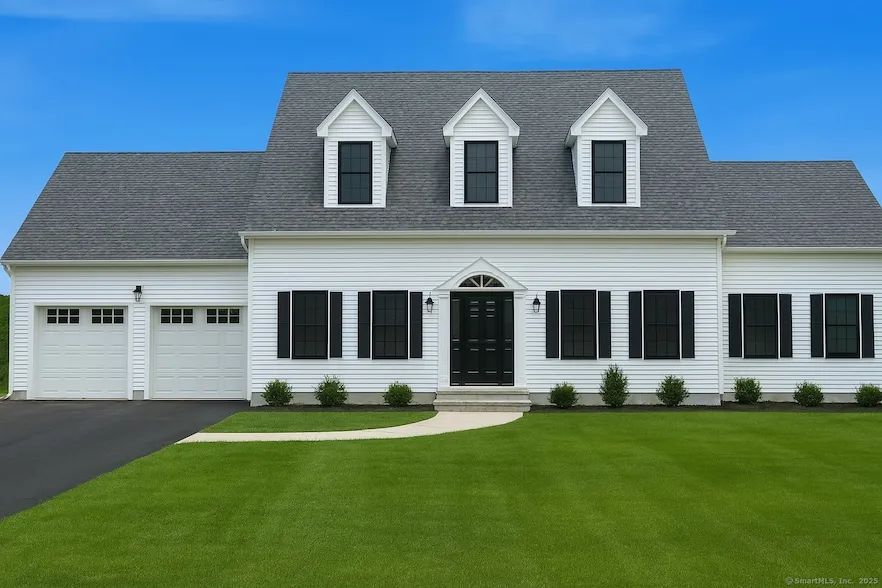 Build your own expanded Cape Cod inn the South End of Cheshire. Large lot of 2.96 acres. Convenient to Quinnipiac, Yale and New Haven. 4 bedroom, 2.5 bathroom Maple model with a primary bedroom on the main floor. Oversized family room with fireplace opens to a custom kitchen with island. Formal dining room for get togethers and events. The 1st floor hosts the primary suite with large walk in closet and tile shower, and laundry room, making it a convenient option for those who prefer one level living. 3 Guest bedrooms upstairs ensure there is room for everyone. (Other house models available to chose from. Pricing varies. Our local/custom builder can also price your own plans or help to create a plan that meets all your wishes!). Design shows a deck but note that this house will have a patio, not a deck.