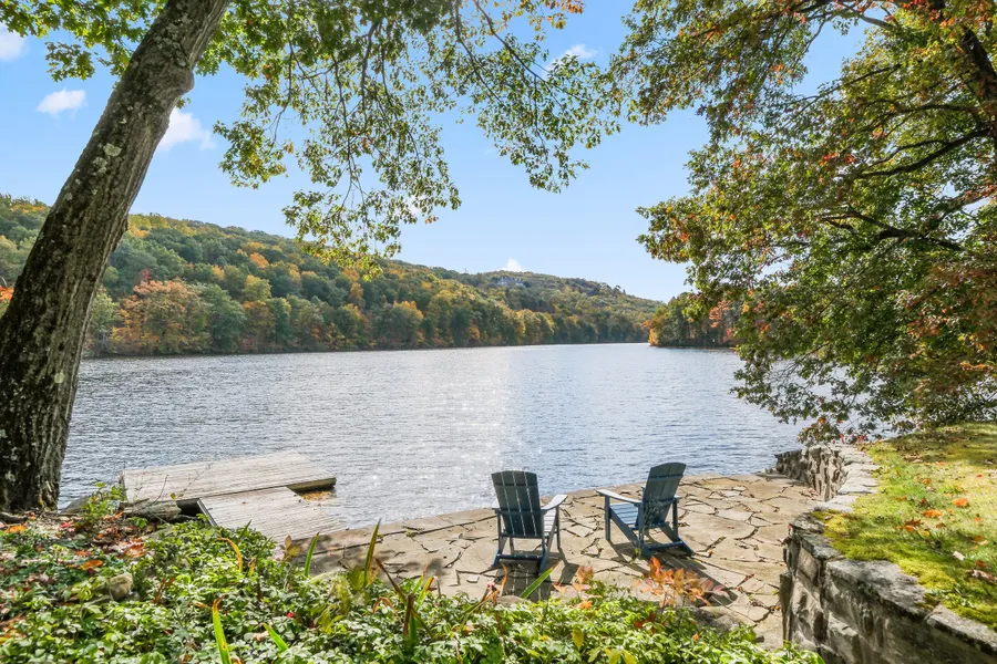 Waterfront excellence in gate-guarded Tuxedo Park, NY. Approximately one hour from Manhattan is a luxury retreat comprising a peninsula of two lakefront parcels across nearly 3 acres with a newly renovated brick Georgian colonial home. The property assemblage boasts hundreds of feet of shoreline on Wee Wah Lake. Enjoy a lakefront lifestyle with your own private water’s edge patio and dock. Boating, swimming, fishing, SUP, skating are possible activities to enjoy at this stunning offering. Scenic views from nearly every room in the home overlook the lake and private lawns with flowering trees gently rolling toward the water’s edge. Inside this delightful home, the newly reimagined interior is crisp and mostly brand new. The new, sleek kitchen is highly functional with professional-grade appliances, and the remodeled baths provide true comfort. Open living spaces on the main level are punctuated by southerly light exposures and cozy nooks including living room and family rooms with wood burning fireplaces for year-round atmospheric comfort. The grand entry hall, kitchen and living room all open to bluestone patios with breathtaking lake and mountain views; the flow is perfect for entertaining. A first floor bedroom suite is a convenient feature along with a new powder room near the kitchen. Upstairs there are 3 more bedrooms and two full, beautifully renovated baths including the primary suite. A full, unfinished basement provides a bonus area for imaginative uses and the attached 2-car garage offers room for extra storage. The far end of the adjoining land overlooks a cove-lagoon around which is partly manicured and partly wild and it all sparkles with magic as sounds of nature envelop you by the Warwick Brook. The brook originates in the mountain lakes of Sterling Forest gently meandering through the property into Wee Wah lake. Some younger and upgraded systems run the home with monitored irrigation for parts of the elegant landscape. A gorgeous home, well-suited for full or part-time living. The stunning property features and natural scenery will inspire in any season. Tuxedo Park, one of America's early, gate-guarded and most distinguished planned communities, is surrounded by ~70,000 acres of preserved state forests. Miles of trails and the entire Lower Hudson Valley with major lifestyle and cultural amenities in close driving proximity. Turnkey and exceptional.