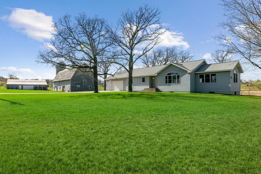 Well maintained home situated on nearly 3 acres SW of Saint Joseph. Additional 37 acres surrounding the property is available for purchase. Main level vaulted ceilings provides a feeling of space and openness in the living spaces. French doors lead you from the living/dining area to a 4 season porch that would make a great at home office space. The main level owner's suite features a nice walk-in closet along with a private bathroom. An additional bedroom, full bathroom and convenient mud room off the garage completes the main level. The basement is set up for fun entertaining with a bar, game room and family room. There is an additional owner's suite with a private bathroom and walk-in closet in the basement plus another bedroom and bathroom. In-floor heating throughout the lower level will keep you comfortable on cold winter days. A staircase from the basement provides a second access to the garage. Don't miss your opportunity to view this beautiful acreage property.