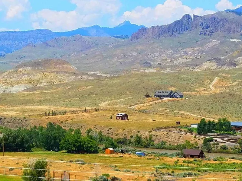 Rare and special property located in the Wapiti Valley. 2 possible building sites, 1AC lower site has 800' of NF HWY frontage, present use as pasture. 1.97AC upper site has been excavated and leveled. 360 degree panoramic mountain and river views, sitting areas and 2 fire pits. All roads and ramps in place and compacted,ready for finish materials. NO COVENANTS! NO SUBDIVISION! Must see to appreciate! 2 cabins on skids "The Hobbit House" cabin is 12'x14', loft, wood stove, cistern. New cabin is 12'x24', sat.dish, Verizon antenna, blue pine ceiling.