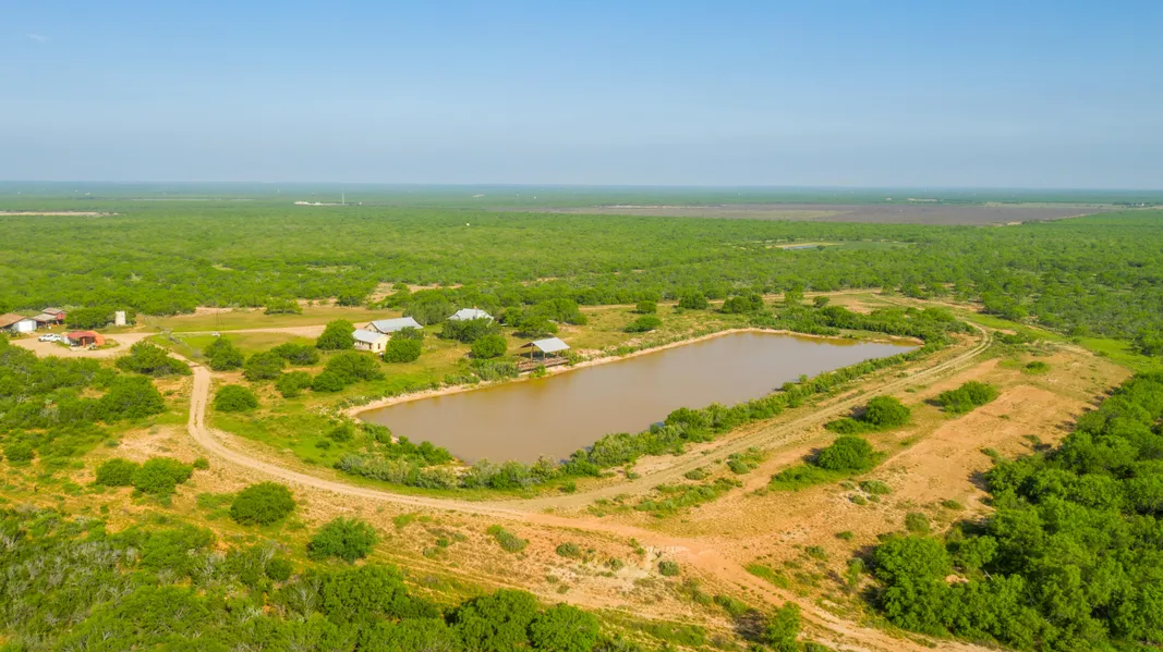 Water: This property has impressive surface water with 11 tanks/ponds plus 2 water wells. One of the wells supplies water to the houses, and the other well pumps to the pond near the house. There are several creek drainages that traverse the property that will run water during hard rains.
