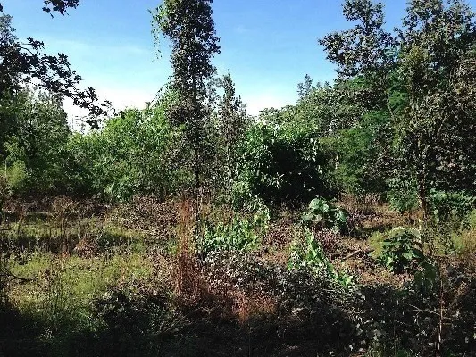 Approx 1.5 acres has been cleared, ripped and planted with fruit trees, bamboo, and ornamental and medicinal plants. Currently producing seeds and cuttings for a small nursery. Half the cleared area has been cindered. Uncleared area remains in natural state. Parcel 157 is surrounded with barbed wire/pig wire and planted with Bamboo is on mauka side
