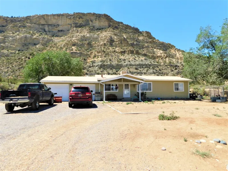 Fly fishing is just a few miles away! This 2 BR 2BA home features an updated kitchen, doors, gutters, Italian tile, water lines under the house and rain gutters. The living room includes a wood stove for coziness in the winter. All sitting on almost 3 acres with a barn! The master bedroom has been enlarged for extra space, but could be made back into two bedrooms, if desired. The garage is oversized and big enough for 3 cars or 2 cars and a boat! Beautiful views of the mesa behind the house will keep you mesmerized, while a view of the San Juan River valley is out front. house is close to Wines of the San Juan as well.