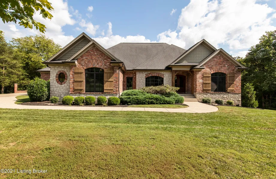 Exquisite walk out ranch home on 3 acres located in Crestwood KY. Entering the home through the regal wood front door you enter into the foyer. To the left you will find the formal dining room or office. Continuing into the home you are greeted by a large family room with built in cabinets and wood beams above. There is a wall of windows overlooking your backyard letting in the natural light. The open family room is adjacent to the the kitchen. The kitchen has granite countertops with custom soft close cabinets and stainless steel appliances. The eat in portion the kitchen has a wall of 150 year old reclaimed brick. The kitchen opens up to the screened in patio and the uncovered portion of the deck. Exquisite walk out ranch home on 3 acres located in Crestwood KY. The laundry room has a dog washing station. Across from the laundry room is a built in hall tree. The access to your four car garage is in this hallway. The two upstairs bedrooms are in this side of the home. Both bedrooms have large closets and share a Jack and Jill bedroom. On the other end of the home you will find the expansive primary bedroom with vaulted ceiling's and the en suite primary bathroom. The bathroom has separate vanities, a walk in shower and a jacuzzi tub. There are also separate closets. When you go down the stairs into the basement you will be wowed by the arched brick lintels and massive amount of space. There is a bar, an office, and a gym in the basement. You will also find the fourth bedroom and full bathroom. The walkout basement leads you the oasis of a backyard.There is a fenced backyard and in ground pool. There is a fireplace by the pool. There is also a covered patio. The wooded area surrounding the property is a nature preserve and cannot be built on.