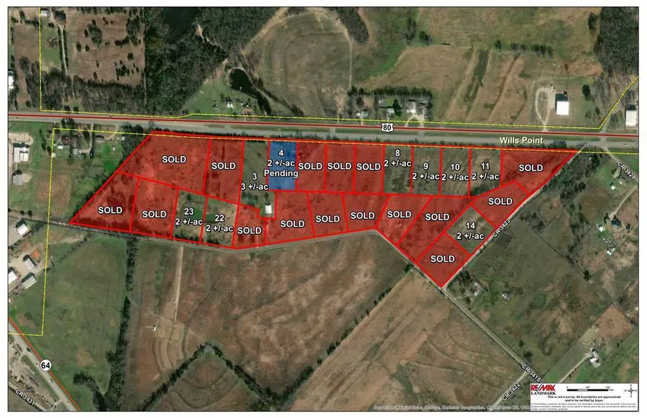Research Parcel InformationFrom Wills Point take US Hwy 80 E just past State Hwy 64 property on R SOP, lot numbers on each tract.
