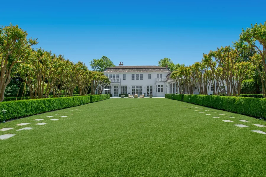 This exceptional two-acre Southampton Village compound offers a rare combination of scale, privacy, and amenities in one of the Hamptons' most desirable locations. Set on a quiet street of estate homes, the property is less than one mile from ocean beaches, dining, and village shopping, providing both convenience and discretion. The main residence features six bedrooms, each with an en-suite bath, and is thoughtfully designed for both everyday living and entertaining. Interiors have been newly painted and styled, creating a clean, refined aesthetic throughout. Three separate living rooms offer flexible gathering spaces, while two dedicated offices include a sun-filled first-floor corner office and a secondary office located off the upstairs primary suite. The finished lower level adds valuable living space with a wet bar, media area, and an additional bedroom with its own private entrance, ideal for guests or extended stays. Multiple French doors throughout the home open to expansive outdoor areas, creating a seamless connection between indoor and outdoor living. Designed by Ed Hollander, the grounds are meticulously landscaped with groves of white crape myrtles, manicured lawns, and formal gardens. More than 3,000 square feet of slate patio surrounds the home, including a covered al fresco dining area. The backyard is fully private, bordered by mature trees and tall privet hedging. A fully renovated 60-foot heated pool with waterfall spa anchors the outdoor setting and is complemented by a covered outdoor bar with television and sound system. The compound also includes multiple accessory structures, a brand-new roof, a guest house, a separate gym pavilion, and a pool house with living area, kitchenette, covered dining space, and a bathroom with steam shower. A basketball court sits just beyond the pool house, completing the offering. This turnkey Southampton Village estate presents a rare opportunity to acquire a fully developed compound with guest accommodations and refined outdoor spaces, all within easy biking distance to Fowler's Beach and Flying Point Beach.