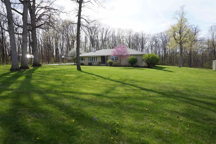 **Contingent on inspection and appraisal - showing for back up offers ** All Brick classic with over 3000 square feet of living space sitting on a 2 acre lot that backs up to woods. Very private location but close to hospitals, schools, shopping, and I-69/469. Don't miss this one-of-a-kind opportunity!! Extremely well-maintained home with 4 bedrooms and 2.5 bathrooms, a sunroom, & two living areas. Galley kitchen with exposed limestone creates a mid-century modern vibe, and lower cabinets have slide-out drawers. Check out the pantry with custom-built storage system. The two-way fireplace w/electric logs is enjoyed from dining and family rooms. The Family Room also has bookshelves and ceiling fan. 3 Bedrooms run along front and side of home and 4th bedroom area could be a mother-in-law suite. The 18x18 living room can host your family and friends gatherings, and the adjacent dining room is quite spacious too! The sunroom has plenty of natural light along with the vaulted ceiling where you can enjoy the nature views. There is an attached 2 car garage with 2 rigid insulation panels and built-in storage, a heated detached 30x24 two-car garage with built-in tool storage, and a storage shed. Plenty of play space in the yard, and the screened gazebo is another great outdoor feature. Other notable features include a Tear-off roof in 2017, updated electric, 2016 new hot water heater, vinyl thermopane windows, & 4 Zones Heating with hot water heat.