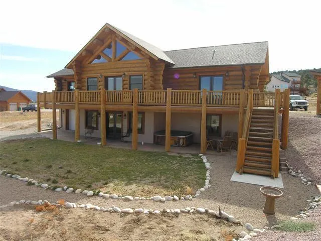 This beautiful builders log home has been strategically located to take advantage of the outstanding mountain views. Its bright, open floor plan and the many windows bring in the natural lighting and frame the surrounding landscape. The details of the log work are like having log art built right into the home.