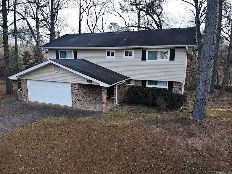 This custom, craftsman style 4-bedroom, 4 bath home sits on 2 beautiful lots in a well-desired sub-division. It features a tri-level layout with a fully functional walkout basement apartment. It has two gas fireplaces, a vaulted living room/dining room ceiling several built in cabinets/desks and lots of storage. Updates include new windows, new roof and HVAC in 2024, and a new hot water heater. Extra insulation installed making for very inexpensive utilities. The large deck has a spectacular view of nature. Sitting minutes from the I-30 corridor and easy access to surrounding towns and shopping, this a must see for home shoppers needing large square footage. Schedule an appointment today!