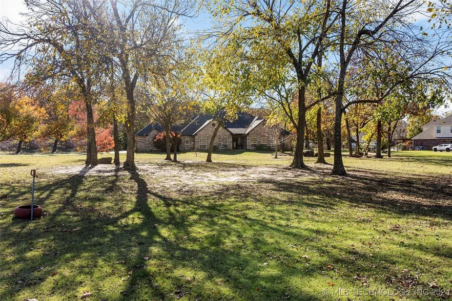 If you are looking for more space and a complete slice of Heaven this 2-acre property is just what you ve been dreaming of. It has the most beautiful setting with a pool, mature trees, a butterfly garden, and a little creek running through. It s the kind of place where you ll want to spend every morning with your coffee or every evening watching the sunset. Inside this home feels warm and inviting from the start. The kitchen is the heart of the home, with an oversized island, double ovens, and plenty of room for everyone to gather holidays here would be amazing! There s an entertainment space/ second living right off the kitchen. The primary suite is spacious and relaxing, with plenty of natural light, a soaking tub, walk-in shower and fantastic closet. And the best part? While it feels tucked away, you re just 10 minutes from Walmart and 15 minutes from Tulsa Hills and city conveniences.