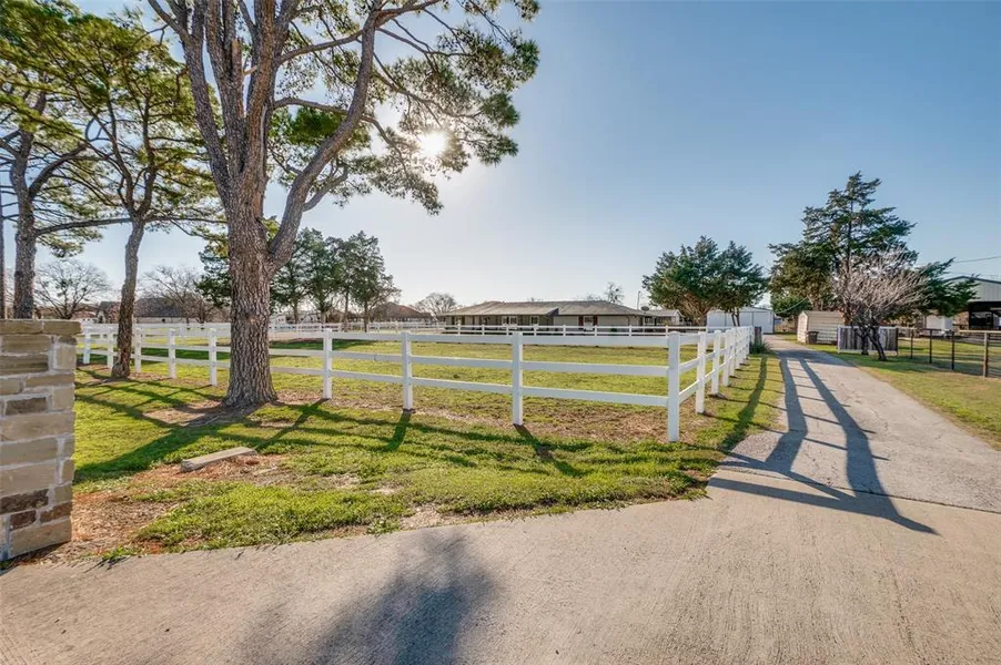 Breathtaking views from this fabulous country setting. Fantastic location. 1 mile from Lake Lewisville,shopping and restaurants. 2 separate pastures.Residence includes 3 bedrooms,2 baths and study. The kitchen boasts granite countertops,travertine,tile and stainless and black appliances. 4 stall Shedrow style barn featuring a tack room and covered runs. 1500 square foot shop. Sparkling inground pool. Covered patio,great for hosting your next outdoor barbecue.
