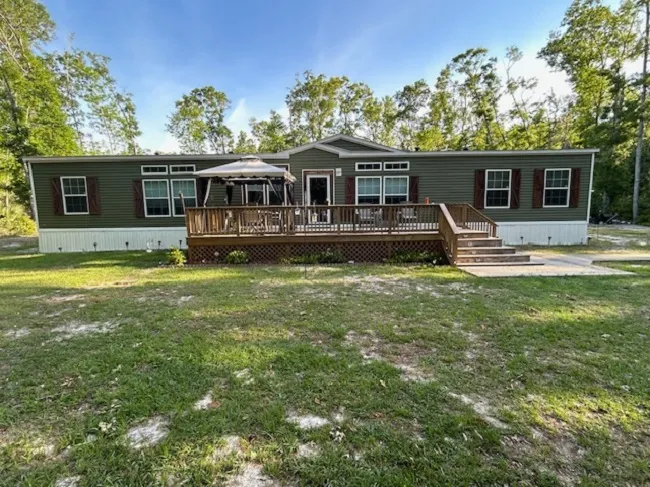 If space is what you are looking for then take a look at this country beauty! Built 2020, 4 bedroom, 2 bath DWMH that boasts 2280 heated/cooled sq. ft. nestled on a pretty, fenced/gated 2 acres. Step inside to be mesmerized! The open floor plan seamlessly connects the spacious living areas creating a very inviting atmosphere. You are naturally drawn to the amazing jaw dropping kitchen with two islands, lots & lots of cabinet and counterspace, The formal dining features a tray ceiling that lends to the feel of fine dining. Two living areas that will make everyone happy. The spacious master suite with dual walk-in closet opens to a glamorous bath with stunning effects from the tray ceiling to the bathing tub to the extra large tiled shower to the dual sinks. The 3 extra bedrooms are perfect in size and will fit twin or queen sized beds with walkin closets. Crown molding and six in. baseboard accents the home throughout with vinyl plank flooring. Imagine sitting on the open, new 12x30 wood deck enjoying morning coffee and listening to the birds sing or enjoying evening sunsets to the tune of nature. Other features include a NEW metal 20x20 workshop with concrete flooring for all of your projects. The property has a few buffering trees and native vegetation for privacy/shade between the neighbors. Make appt to view this beauty asap!!! ATTENTION!!!! $5,000 SELLER CONCESSIONS OFFERED TOWARDS BUYERS CLOSING COSTS OR TO HELP BUY DOWN THEIR RATE!!!!