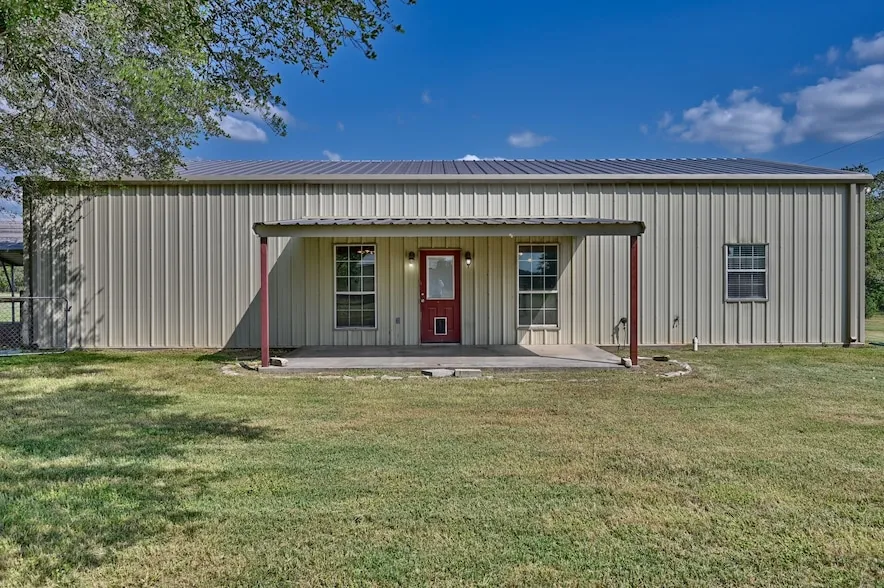 SELLER HAS ADJUSTED THE PRICE! It's hard to find a home on small acreage, BUT HERE IT IS! Located in desirable Fayette County down a secluded country road is a 3bd/2bth, 2220 sqft metal home with stained cement floors FOR EASY MAINTENANCE! All appliances convey, including the washer and dryer located in the generous laundry room. This is an open concept home and as such the kitchen and entryway lead directly into the great room complete with a vaulted ceiling. Other amenities include a roll around kitchen island, a fenced back yard, a covered patio, a water well and septic system, a 2 vehicle carport and a storage shed for lawn equipment. Bring your decorating ideas since this is a blank slate! Buyers will need to survey the property.. property lines are estimated. An electronically staged great room is added to give you an idea of how furniture can be arranged. Schedule your showing now... this won't last long!