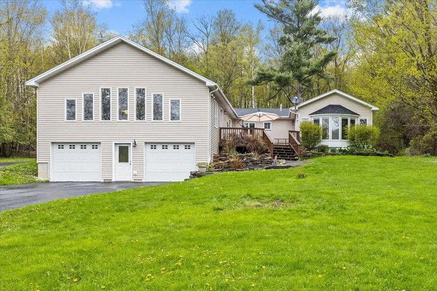 Welcome home to this 4 beds, 2.5 bath raised ranch. This home offers 2 levels of spacious living, cathedral ceilings and an abundance of natural light. Enjoy your year-round sunroom with exposed beams, tile flooring and direct access to the front deck, where you won't have any problems entertaining or just relaxing after a long day. Private lot with plenty of room for you to garden and sit around the bonfire pit. This home is nestled in a very desirable location not far from all amenities and easy access to I-89. Plenty of parking, and the elevated driveway next to the side door makes this home easy for one-level living. Don't miss out on this incredible opportunity to make this place your home!