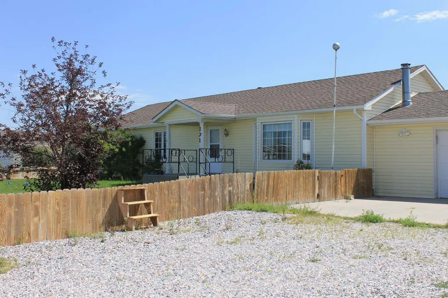 You will love the views from this acreage south of Torrington. This 3 bedroom/ 2 bath home has curb appeal and room to enjoy it. The extra detached garage including shop/craft area and additional 128 sq ft metal shed make this a versatile property indeed. Kitchen/dining combo leads to enclosed porch though sliding glass doors were relaxation awaits. Pellet stove in living room and garages, established yard, UGS. Seller is offering $2000 flooring allowance.