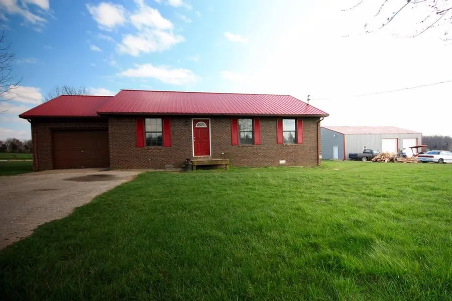Adorable 3 bed 1 bath brick ranch style home with 1080+/-sqft located in a rural setting just outside of Leitchfield sitting on 2+/- acres. This home is marked with beautiful hardwood floors and tile, attached 1 car garage, metal roof, large back deck, kitchen appliances and central heat (electric) and air. There is also a large detached garage with electric and water. Very nice home! Call today!