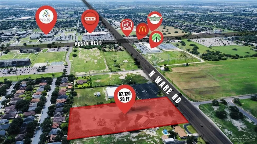 Prime Location on North Ware Road! The neighborhood is located in the Western portion of the City of McAllen. This area includes vacant land, residential and commercial uses. The neighborhood is approximately 85% built-up and the growth rate is stable. All utilities are available. The land is between Pecan and Vine, close to Expressway 83, Convention Center, Shopping, Banks and across the street from Nikki Rowe High School. This zoning allows for Office, Service Business and Various other Commercial Use.