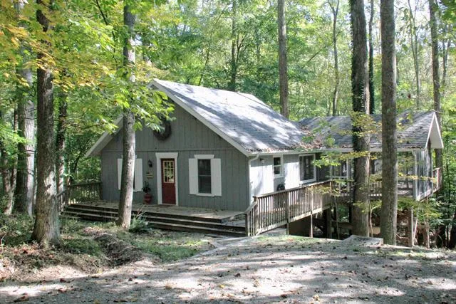*SOLD - December 2013* Come discover this eye-catching cottage in Hide-A-Way Hills, nicely nestled on two scene-stealing lots (549+550)...getaway gateway to the famous Hocking Hills vacation region since 1961. You'll certainly appreciate the easy access and generous amount of parking space, and right away be drawn to the gotta-have screened porch, with wood cathedral ceiling & skylights. You'll also want to do lots of wildlife watching off the back deck, along with the classic sun porch. The great room features original hardwood flooring topped by another wood cathedral ceiling, and multiple windows provide generous amounts of natural lighting. The efficient kitchen offers lots of counter and cabinet space, along with newer full-sized range and refrigerator. Just off the kitchen is a convenient half bath, and the main level also provides the first of three bedrooms. A nicely finished lo...