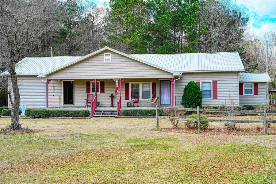 If you are looking for peaceful living, this is the place. Home sits on a beautiful lot with no HOAs and no restrictions. The double lot is approximately 2 acres. This 3 Bedroom/2 baths home features a nice front porch, oversized carport in back, gas logs in living room, a roomy laundry room with built-in sink and a detached storage building. All appliances convey including washer and dryer-hot water heater is an 80-gallon tank. Home has new HVAC system installed 2021 and metal roof was installed in 2012. Home is on well and septic. Book your showing time today!