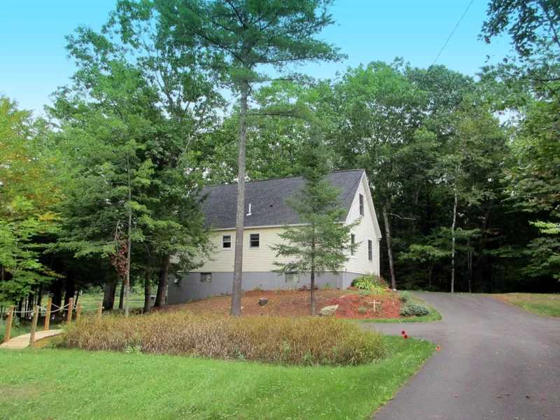 Year round home right on the water & in move-in shape. Set back off the road for privacy on a lovely wooded lot. First floor features an open floor plan for the kitchen, dining & living room areas. Living room opens to a screened porch overlooking the water. Second floor loft area could be used as a home office. 2 updated bathrooms. Paved driveway & 2-car garage both new in 2015. Roof shingles on home new in 2014. Fish, boat & swim from the dock! Sit back-relax & listen to the loons! Call Kim for showing soon.