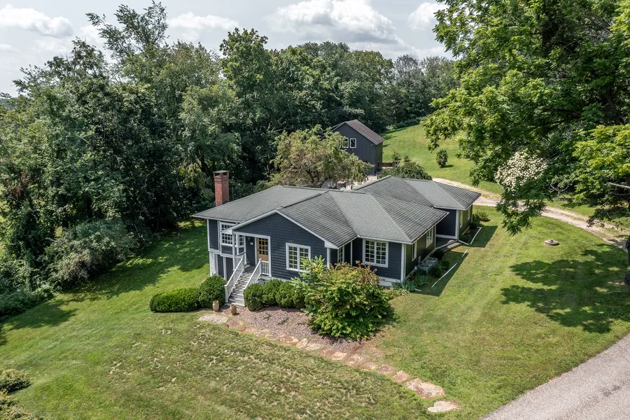 Set on 2 acres abutting conservation land, this 1963, 3 bedroom home was completely renovated in 2001 with great care and quality. The stylish, light-filled home was thoughtfully done using vintage architectural elements and offering charm and character throughout. Attention to detail is everywhere and with over 2000 sq. ft. of one floor living. There are wood floors throughout, central A/C and a whole house generator. The large primary bedroom has a wonderful en-suite bath and a generous walk-in closet. The detail continues to the exterior with private decks and beautiful plantings. In addition the barn/garage has a finished studio space above. Only a few miles to the village center and less than 30 minutes to the Metro North train into NYC.