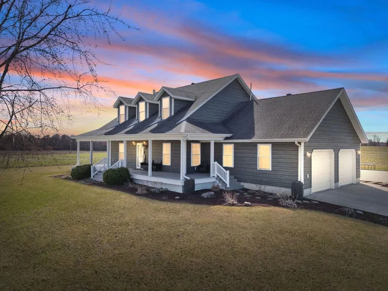 Meticulously maintained, very private setting & priced to sell! It's everything living in the country has to offer! This beautifully kept home is full of character & custom detail. Upon entrance you'll immediately fall in love with the woodwork & natural light that floods the space. Large kitchen flows right into the dining & living area & boasts planked vaulted ceilings. A split bedroom floor plan with main level primary suite, plus loft space upstairs off of additional 2 bedrooms & full bath. Laundry hookups on main & upper levels! Fully finished basement & garage are both equipped with heated floors. Outside, enjoy Indiana's scenic countryside sunrise from your wrap around front porch & catch the sunset off the back deck! Plenty of space for activities on this 2 acre property. Pole barn to store the toys & a great yard to enjoy them in! Sale includes a whole home propane powered gener...