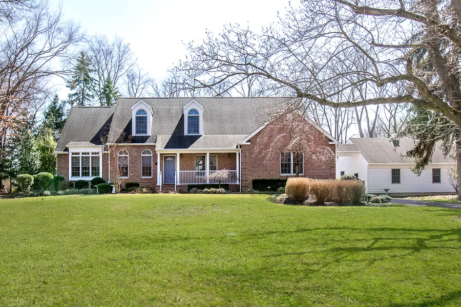 Gorgeous 5 bedroom, 3 bath brick front colonial home. 2 covered porches. Entry foyer with crown molding & upgraded light fixture leads to the oak tread stairway. Kitchen has corian counters & granite center island, stainless steel appliances including built-in microwave & Bosch dishwasher, upgraded cabinets, & designer tile backsplash. Family room has a floor to ceiling stone wall fireplace with Tennessee sandstone mantle & hearth, custom built-in cherry entertainment center, 2 ceiling fans, wall scone lighting, recessed lighting, & vaulted ceiling. Living room has a gas fireplace with custom mantle, built-in cherry cabinets & bookcases, ceiling fan & recessed lighting. Dining room has crown & chair molding, recessed lighting & wall sconce lighting. 1st floor Master bedroom has vaulted ceiling, ceiling fan, wall sconce lighting, & 2 walk-in closets with professional closet organizers. Master bath has Ming Marble floor & shower, jetted Jacuzzi tub, recessed lights, custom built-in mirror with marble surround, corian counters. 2nd bedroom has built-in bookcase & desk, recessed lights & ceiling fan. 2nd bathroom has Carrera marble tile floor, half-wall ceramic tile, built-in cabinet, upgraded lighting, & jetted Jacuzzi shower. 3rd bathroom has marble floor, corian shower, & countertop. Additional features include: large barn with a basement, 2 car garage, exterior motion detectors, circular driveway, 2 sets of French doors leading to Belgian Block brick patio with built-in planting beds, Brazilian cherry wood floors on the 1st floor, blue stone front walkway, and MORE!