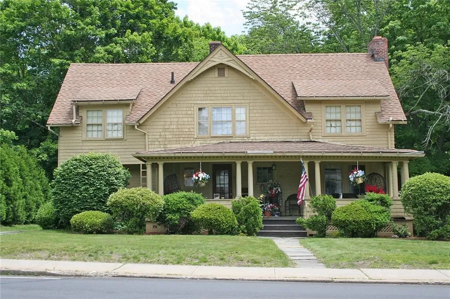 This is one of the grand homes that line historic Main Street. A classic front porch runs the width of the home, presenting a welcoming face to the street. Inside, a spacious foyer with half bath opens into large formal living and dining rooms. The home even has a breakfast room adjacent to the kitchen. An office with a private door to outside and full bathroom may be used as a family room, or could be a first floor bedroom. To the rear is an enclosed porch with a fireplace. Master bedroom has a full bath and a walk-in closet. Second bedroom is huge and has built in shelves. First floor master bedroom possible, with full bath, in dining room or office. The home has three full bathrooms (one on 1st floor) and one half. Hardwood floors and central air. It does need some love and attention, but would reward the effort. Large lot and circular driveway. 2 car garage with second story. Centrally located and could be used for some types of in-home business, for which the first floor office would be ideal.