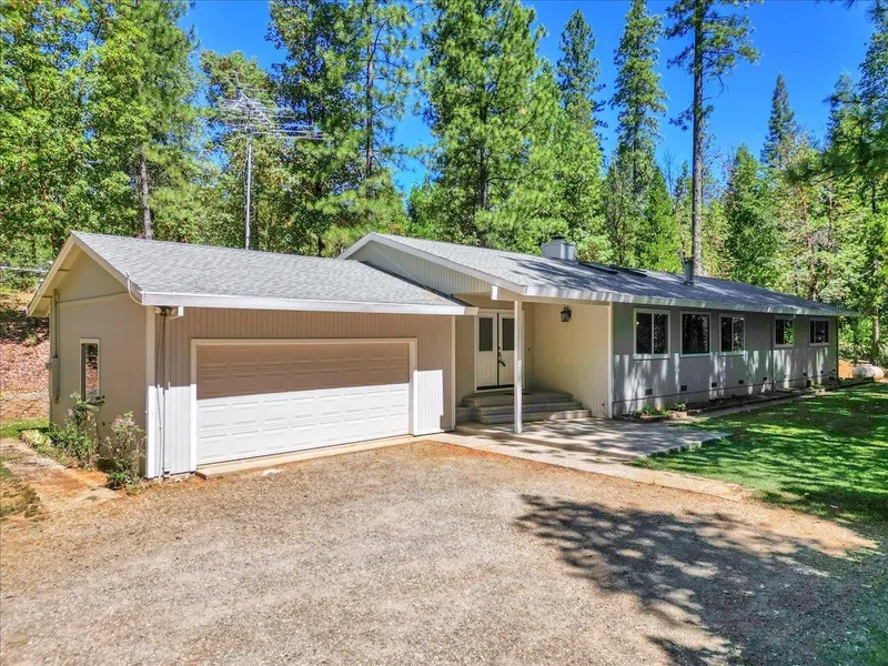 Single Story Grass Valley Home. Spacious 3 bedroom, 2 bath, Ranch style home on 2 treed acres within 2 miles of Grass Valley. Recent upgrades, Granite kitchen counters, remodeled bathroom, dual pane windows, free standing gas fireplace with stone backdrop and a wood burning brick fireplace, laminate wood style flooring and carpet. Private setting on nicely wooded acreage. 2-car oversize garage. Room for expansion or an ADU. Zoned Res. Ag allowing a few animals. Paved road access in a great location close to downtown Grass Valley.