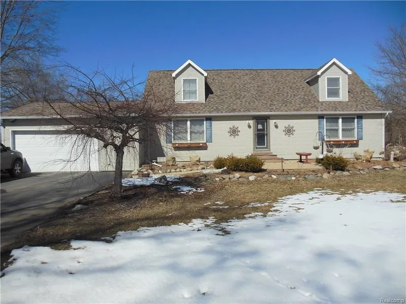 Welcome home! There's something for everyone in this lovely Cape Cod style semi-custom home on large country lot; Holly mailing and schools. 4 generous sized bedrooms including first-floor master and 3 and 1/2 baths. Sought-after wide open floor plan with wood floors on main level. Kitchen has a granite island and includes stainless steel appliances. Walkout basement has more finished living space along with a bedroom and a full bath. Dream garage with heat, electricity and rear door that allows access for vehicles to the backyard. Great entertaining space outside consisting of a porch, extensive deck, patio, gazebo and firepit. Beautiful backyard with many flowering trees, shrubs and plants, lots of space for kids and pets or for planting a vegetable garden. House sits on 1.9 acres. Call today to schedule your showing!