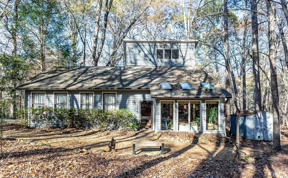 Private retreat on approximately 2 acres, yet only 5 minutes to Chapel Hill. Unique home with flexible floor plan: Primary bedroom used on first or second floor. Relaxing wooded views from back screened porch and heated/cooled sunroom. Special features include skylights, vaulted ceiling, large open breakfast area leading to large screened porch and " Arts & Craft" building features. Private bedroom with balcony and full bath on 2nd floor. Office has closet-could be used as a bedroom. Primary bedroom could be up or down. Partially fenced yard perfect for all your pets. Paved driveway with extra parking pad. This is a rare opportunity for privacy and peace under 400K , yet just minutes to Chapel Hill/UNC. Fast internet service available. Move in ready. Showings start Saturday 11/19