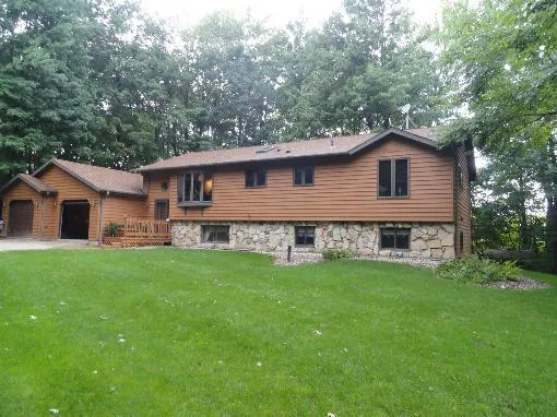 Tons of space in this very well maintained raised ranch! Open concept main level. Kitchen features oak cabinets, tile floor, & large center island. Large 2-level deck off living room. Living room offers large fireplace, surround sound, & lots of windows. Master bedroom w/ large walk-in closet. Main level laundry. Finished lower level features 25x25 family room w/ gas fireplace and wet bar. 2 additional bedrooms, full bath, and utility room. Almost 2 complete homes all in one! Large 28x26 attached two car garage with additional 24x24 detached workshop. This home is in excellent condition and is "move in" ready.