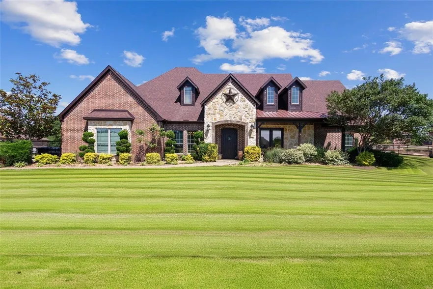 This custom home is nestled on 2 serene acres in the highly desirable High Point Ranch. Enjoy the best of both worlds: the tranquility of country living and the convenience of modern amenities. Relax in your spacious primary suite with a spa-like bathroom or retreat upstairs to the oversized media room for family movie nights. The open concept living area is perfect for entertaining guests, while the large office provides a quiet space to work from home. Step outside onto the sprawling covered flagstone patio and take in the breathtaking views of your private stocked pond. The spacious workshop is ideal for hobbyists and entrepreneurs alike. This home has been thoughtfully updated with modern amenities, including a new roof and gutters in 2024, new flooring in all bedrooms and media room, smart home features, and a beautiful kitchen with updated appliances. Located in the coveted RISD school district, this home offers easy access to top-rated schools, shopping, dining, and entertainment. High Point Ranch community, offering residents access to a network of biking and hiking trails, a community park, and a nearly 200-acre fishing pond. All this while enjoying the benefits of low property taxes and no MUD PID. Don't miss this opportunity to own your dream home!