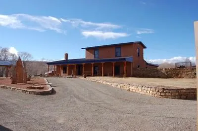 Historic Baca Mansion rebuilt on original site. Adobe 3 bed 1.5 bath with 1 bed 1 bath guest quarters. Sits on 2 acres with Gallinas river running through it.