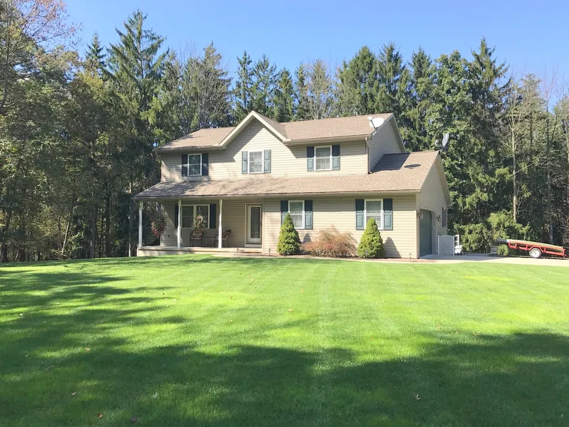 Immaculate house located on ideal lot! Enjoy nature & serenity at this wooded location, yet only minutes from Routes 61 & I78. This like-new house is great for entertaining, not only because of its open floor concept but also for outside entertaining on its 2 tier deck which leads to an above ground pool. The gorgeous custom kitchen has 36 handles, island, snack bar area, large pantry, recessed lighting, along with under cabinetry lighting. Stainless steel appliances, along with a wine cooler are other highlights of the kitchen. The first level also has a laundry room and half bath. The 2nd floor consists of 3 spacious bedrooms, along with 2 full baths. Each bath has double vanities. The master bath has a soaking tub, along with a walk-in shower. Very economical heating since the house not only has a heat pump, but also runs on propane gas furnace for those cold winter months. The walk-out basement would be ideal for a finished rec room and would be easy finishing with the Superior Wall foundation. The exterior of the house is completely maintenance free with a conrete front porch and Trex decking and PVC railing on the rear deck.